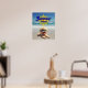 This poster radiates warmth, fun, and the simple happiness of a dog at the beach.