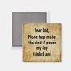 Cute Dog Quote Magnet--for the dog owners. Quote reads, 'Dear God, please help me be the kind of person my dog thinks I am".