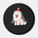 Cute Dog wearing Santa hat and Christmas tree Clas Magnet
