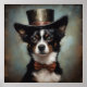 painting of a cute dog wearing a top hat and a red bow tie, ready for a bachelor party