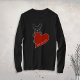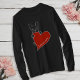 The design is comprised of a line drawing of a cute French bulldog holding onto a red heart. Unique Frenchie dog lover long-sleeve t-shirt.
