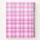 Spiral notebook with an adorable Christmas dog wearing a cute pink plaid bow tie. This tiny little pet is sitting inside a whimsical hat box. A white tree decorated with pink lights in the background. The lights are blurred giving it a magical bokeh effect. Darling Christmas themed photograph. Perfect for dog lovers.