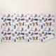 A beach towel for dog lovers. It features illustrations of golden retrievers, border collies, Jack Russell terriers, spaniels, basset hounds, beagles, Dalmatians, golden doodles, Labrador retrievers, and mixed breeds.