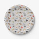 Thiny Stylish Cute Different Types Of Dogs Pattern Design White Background with a faded reflection effect PAPER PLATE. #dogpaperplate #paperplate #paperplatedogdesign