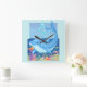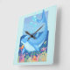 Cute Dolphin Bubbles Sea Life Square Wall Clock