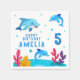 Cute Dolphin Sea Animals Birthday Party Paper Napkins. Cute smiling dolphins in cartoon style. Add your photo and customise the text on the napkins. Fun and cute birthday napkin for a girl or a boy celebration.