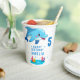 Cute Dolphin Sea Animals Kids Birthday Party Paper Cups. Cute smiling dolphins in cartoon style. Customise the text on the cups. Fun and cute personalised dolphin birthday cups for a girl or a boy's celebration.