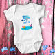 Cute Dolphin Sea Animals Name Baby Bodysuit. Cute smiling dolphins in cartoon style. Customise the name on the bodysuit. Fun and cute personalised dolphin bodysuit for a girl or a boy.