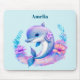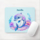 Mouse pad with an adorable illustration. A blue and purple dolphin surrounded by pretty colourful underwater plants.