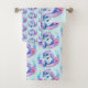 Towel set with an adorable illustration. A blue and purple dolphin surrounded by pretty colourful underwater florals.