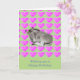 Cute donkey foal lying down with a pink hearts background. Template text reads 'Wishing you a Happy Birthday!' Message inside reads 'Enjoy your special day'. All text can be personalised to a message of your own choice. Lovely cute birthday card.