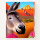 Cute Donkey in red cliffs of the desert with flowering cactus
