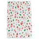 Playful white Christmas gift bag with an all-over repeating doodle pattern featuring charming characters like snowmen, elves, reindeer, gingerbread men, and candy canes. The side panel has elegant green and red script "Merry Christmas" text. Perfect for wrapping holiday gifts and party favors for kids and family. Ideal for a fun, whimsical, and cheerful Christmas theme.