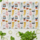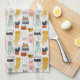 Cute Doodle Hand Drawn Cat Pattern Tea Towel