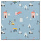Cute Doodle Town Scene Pattern Fabric