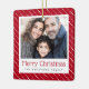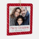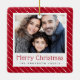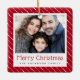 Cute dotted stripes merry Christmas red photo Ceramic Ornament