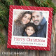 Merry Christmas photo fridge magnet featuring a pattern of cute dotted stripes (white dots on a red or custom colour background), and your custom photo and text. Turn into a fun Christmas gift to for example grandparents by changing the text to "we love you grandma/grandpa".