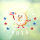 "doughnut forget to vote", "do not forget to vote", "remember to vote", "voting in usa elections", "american presidential election", "cute doughnut cartoon", "kawaii doughnut waving flag", "america red white blue stars", "trump vs harris 2024", "your vote matters"