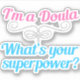 A beautiful doula gift that reads I'm a Doula, What's Your Superpower? This cute present features pink and teal writing with a silver flourish for some extra sassy flair for a natural childbirth helper.