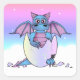 Cute Dragon Baby in Cracked Egg - Blue / Purple Square Sticker