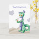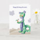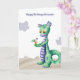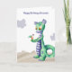 Cute dragon card for the little ones. He is holding in his hands a little gnome offering a flower. Great card for any occasion since you can edit the text. Illustrated and designed by Patricia Alvarez.