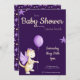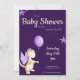 Cute Dragon with Purple Balloon Girl Baby Shower Invitation