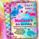 Girls dragon theme birthday party invitation in pretty rainbow colours.