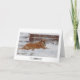 Simple holiday greeting can be personalised for religious or secular. Humourous white Christmas card with font that is covered in snow and ice. Photo of pretty golden retriever ranch dog loving the deep snow. Rust coloured bricks behind him look like layers of cake and icing. Customisable. Adopted shelter pup. From She Wolf Medicine.