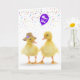 Cute yellow duckings with a purple 32nd birthday balloon and party confetti on a white background.