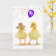 Cute yellow duckings with a purple 44th birthday balloon and party confetti on a white background.