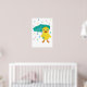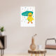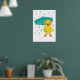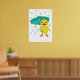 Cute Duck With Umbrella In Rainbow Rain Poster