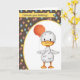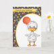 Celebrate her or his birthday with this cute card with an illustration of a duck holding an orange balloon. The background is brown with a pattern of balloons in pink, blue and yellow colours. The sentiment reads "Celebrate your birthday!" but you can customise it if you prefer to add your own message. Illustrated and designed by Patricia Alvarez.