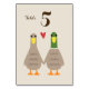 Cute Cartoon Mallard Ducks Holding Hands. A fun wedding reception table number card for the happy couple. Each card must be numbered and added to cart separately. Visit Jenn's Doodle World for even more original table cards and duck themed wedding planning products.