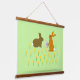 This awesome wood topped wall tapestry features a pair of cute little Easter bunnies surrounded by yellow daffodil flowers. The rabbits are brown with big ears, black eyes and fluffy white tails. One of the bunnies is holding an Easter egg with a pretty purple bow on it and is reaching out to offer it to the other bunny. The daffodils are yellow with a bright orange centre.