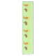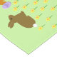 This awesome table runner features a pair of cute little Easter bunnies surrounded by yellow daffodil flowers. The rabbits are brown with big ears, black eyes and fluffy white tails. One of the bunnies is holding an Easter egg with a pretty purple bow on it and is reaching out to offer it to the other bunny. The daffodils are yellow with a bright orange centre.