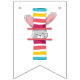 A cute, fun Easter bunting banner with bunnies and hats! With colourful stripes and bunnies to add a splash of cute & colour to your Easter Celebration! The perfect Easter Bunny “Fru” bunting banner!