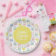 Cute Easter Bunnies with flowers in pastel colours Paper Plate