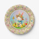 Cute Easter Bunny and Happy Spring Flowers Holiday Paper Plate