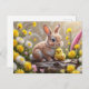 Cute Easter Bunny and Yellow Baby Chick Holiday Postcard