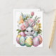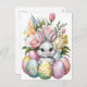 Cute Easter bunny colourful eggs with flowers Holiday Postcard