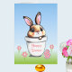 Cute Easter bunny with Easter egg and flowers Card. Text can be personalised for Easter or Birthday. Bunnies symbolise longevity, abundance and good fortune.