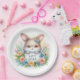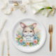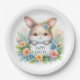 Cute Easter Bunny Holding an Easter Sign surrounded with wildflowers Paper Plates