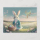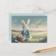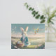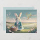 Cute Easter bunny in little blue jacket Postcard