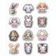 Cute Easter Bunnies some are Kawaii. An assortment of 12 Easter bunny stickers.