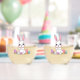Hop into spring with these irresistibly adorable Easter Bunny Stemless Wine Glasses. Each glass features a sweet white bunny with big pink ears, rosy cheeks, and a happy smile, sitting among a rainbow of colorful Easter eggs on a bright green grass patch.
