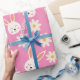 Cute Easter Bunny Pattern with Flowers on Pink Wrapping Paper