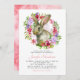 Cute Easter Bunny Rabbit Pink Floral Baby Shower Invitation