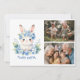 Cute Easter Bunny Watercolor Hydrangea 2 Photo Holiday Card