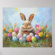 Cute Easter Bunny with Coloured Eggs Poster