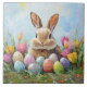 A delightful Easter bunny surrounded by brightly coloured eggs, exuding charm and festive joy in a sweet, playful scene.
